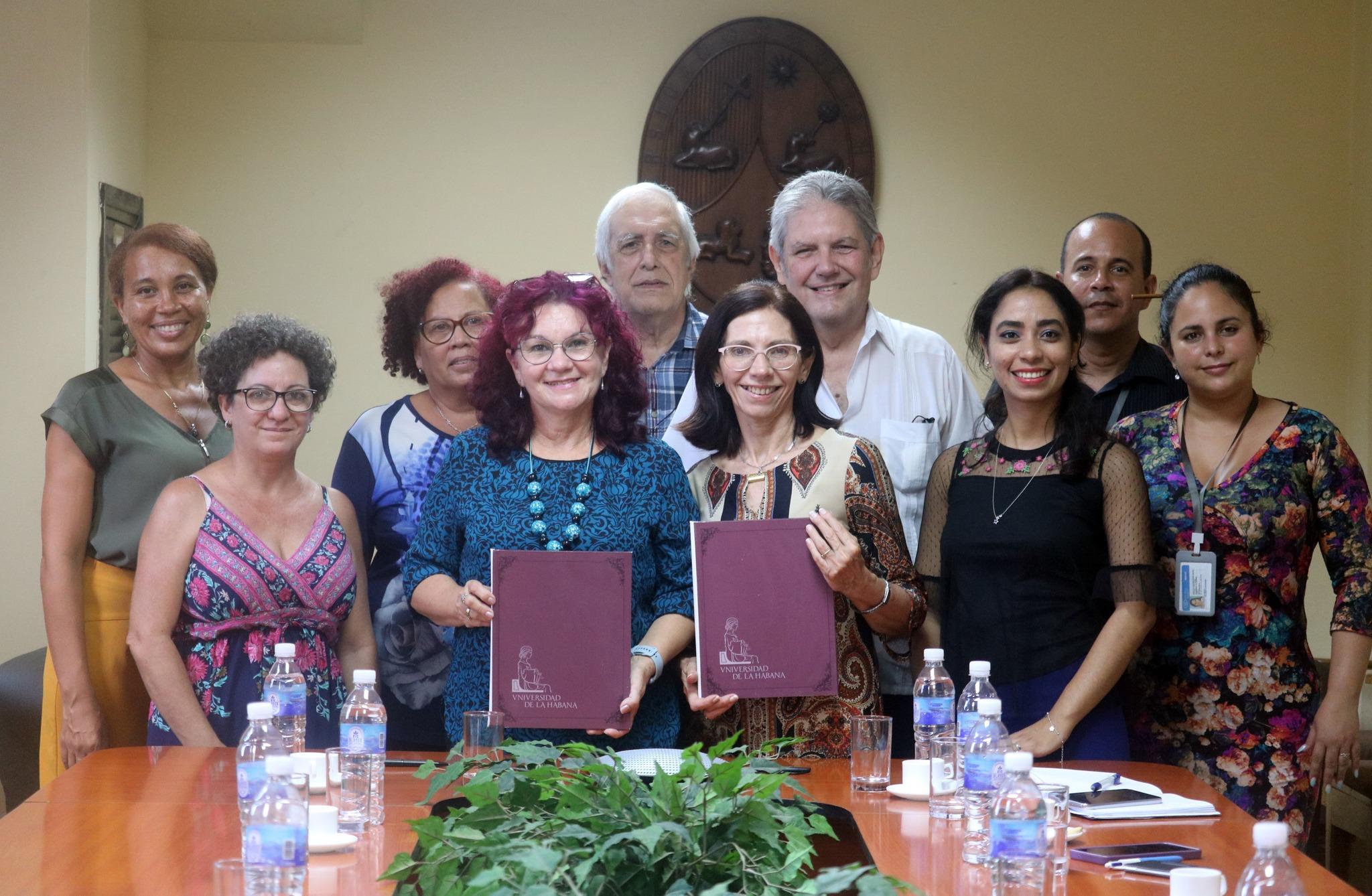 Por nuestro centro participó el equipo de trabajo de la Sección de Docencia e Investigación de la Subdirección de Gestión Estratégica. Firmaron el convenio la subdirectora del CECMED, Dra.C. Ileana R. Alfonso Sánchez y la vicerrectora de la UH, Dra.C. Marta Moreno Cruz.